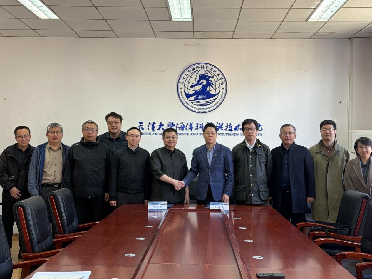 3 月 18 日上午,泰达城投党委书记、董事长、总经理刘爱民一行莅临轻小说 ,学院院长曾志刚、副院长巩乐及部分教师代表参加座谈交流,并共同签署合作协议,为双方深化产学研用融合、助力天津海洋科创产业发展奠定坚实基础。